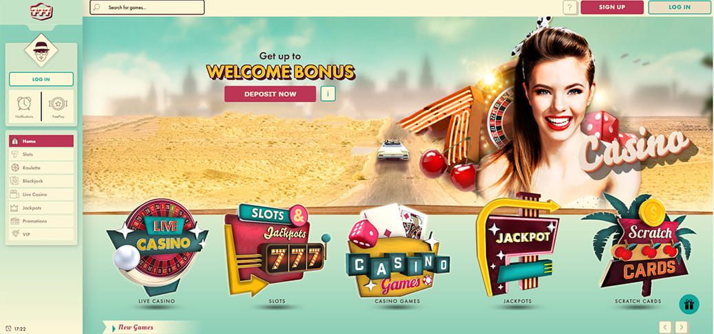 Jika anda melawat laman utama 777 Casino, anda akan melihat pilihan permainan utama yang dipaparkan di laman utama mereka. Di bahagian atasnya, anda akan melihat imej pautan ke kasino secara langsung, permainan kasino, jackpot serta gores dan menang. Terdapat lebih 100 jenis video slot yang ada di platfom ini dengan menawarkan tawaran yang lumayan.